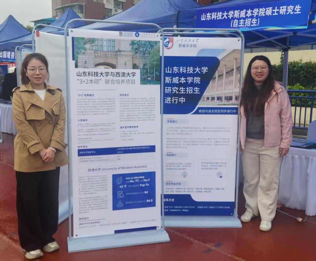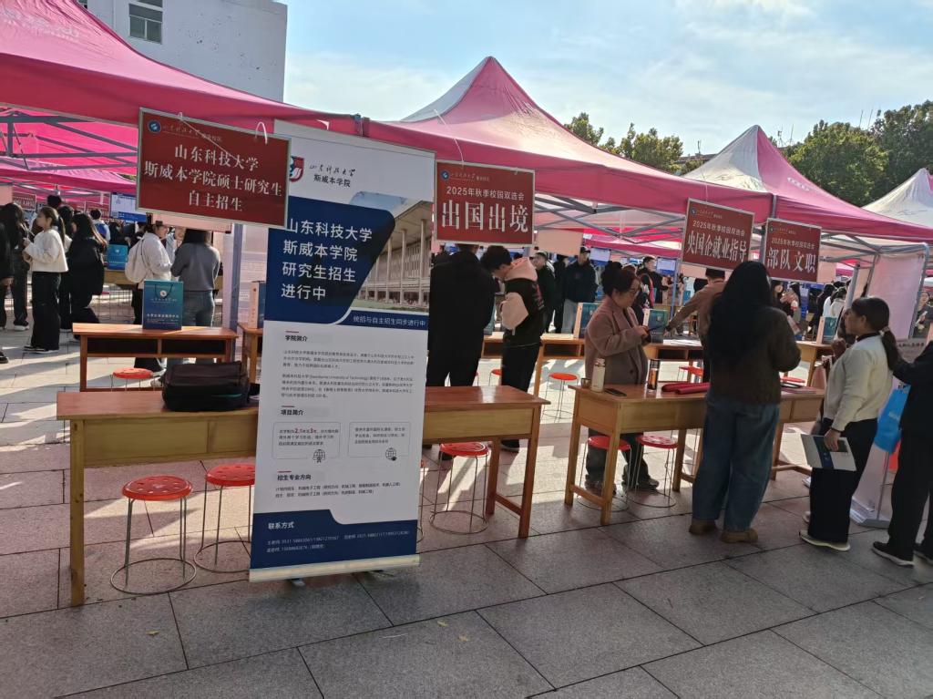 10月15日、19日,在青岛、泰安校区人潮涌动的毕业生双选会上,斯威本学院硕士研究生自主招生留学专区,成为现场一道独特的风景线,为寻求多元化发展的学子们提供了区别于传统就业的“第三选择”。